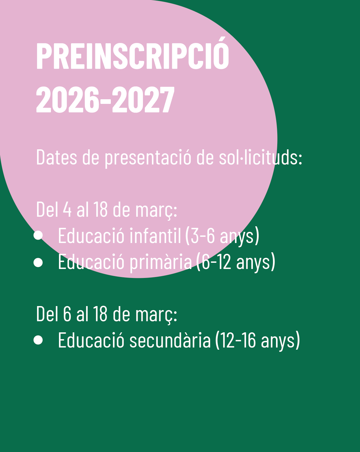 Els centres educatius d'educació, llar d'infants, infantil, primària i secundària de Tordera han organitzat jornades de portes obertes de cara al curs 2026-2027 per aquests propers mesos. En aquesta notícia trobareu en format d'imatges tota la informació:
